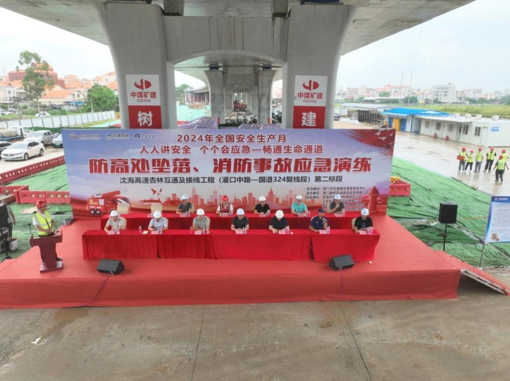 為深入開展2024年全國“安全生產月”活動,落實上級領導有關“安全生產月”活動指示精神,6月15日,由廈門市交通建設質量安全中心主辦,廈門路橋百城建設投資有限公司承辦,安徽開源路橋有限責任公司、江蘇東南工程咨詢有限公司、廈門市灌口鎮政府、灌口鎮專職消防隊協辦的“2024年人人講安全、個個會應急——暢通生命通道”防高處墜落、消防事故應急演練在沈海高速杏林互通及接線工程(灌口中路-國道324復線段)二標項目鋼筋加工場成功舉行。天津第六市政、中鐵集團、中交集團、福建省交、重慶育才等等41家施工、監理單位現場進行了觀摩交流。