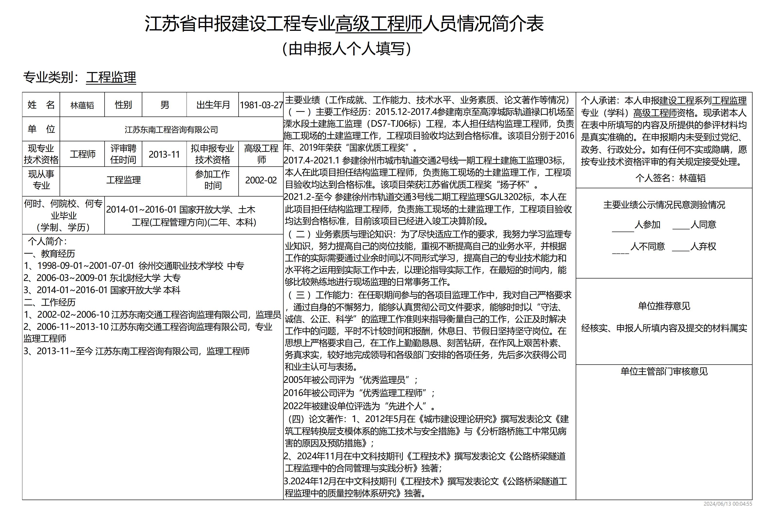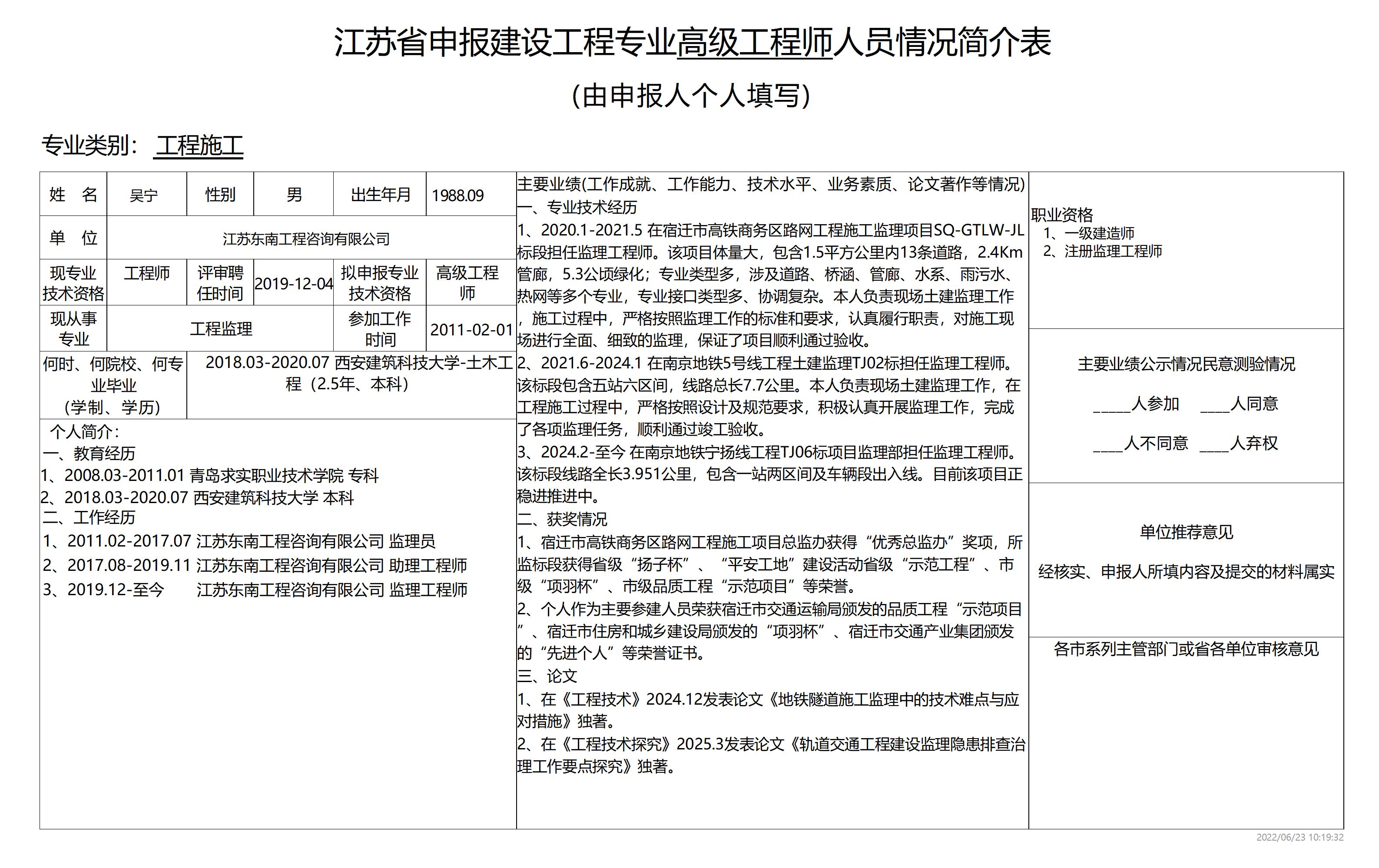 根據(jù)《江蘇省建設(shè)工程專業(yè)技術(shù)資格條件(試行)》規(guī)定,2025年度有林蘊(yùn)韜等11名同志擬申報(bào)江蘇省住房和城鄉(xiāng)建設(shè)廳建設(shè)工程專業(yè)高級工程師。為體現(xiàn)公開、公平、公正原則,廣泛聽取群眾意見,現(xiàn)將擬申報(bào)人員信息予以公示。