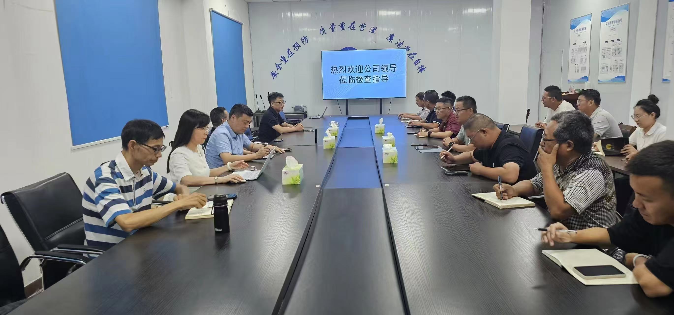 在總監(jiān)辦會(huì)議室,慰問(wèn)組與項(xiàng)目成員進(jìn)行了親切座談。總監(jiān)陳濤匯報(bào)了項(xiàng)目進(jìn)展、后續(xù)計(jì)劃及當(dāng)前應(yīng)對(duì)汛期、暑期的工作措施。