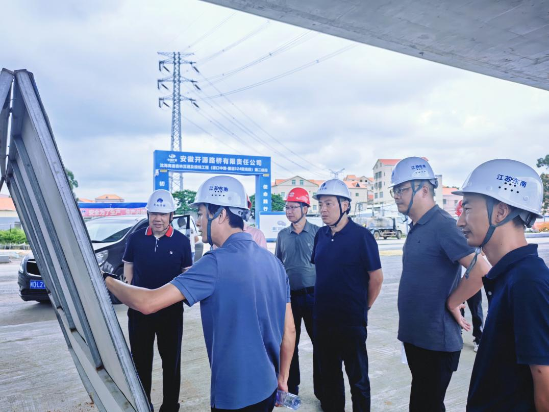 尤鋆一行頂著烈日,實(shí)地查看了廈門(mén)沈海高速杏林互通及接線項(xiàng)目的田李溪大橋、主線高架橋以及寧上高速J1合同段東吾洋特大橋等重點(diǎn)施工部位,詳細(xì)詢問(wèn)了工程實(shí)施及安全生產(chǎn)情況,特別叮囑團(tuán)隊(duì)要做好高溫和臺(tái)風(fēng)季節(jié)的工作安排,強(qiáng)調(diào)要科學(xué)調(diào)整作息。